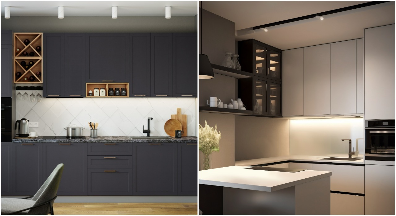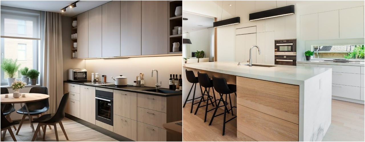 Линейная и островная планировки кухни. Фото freepik.com