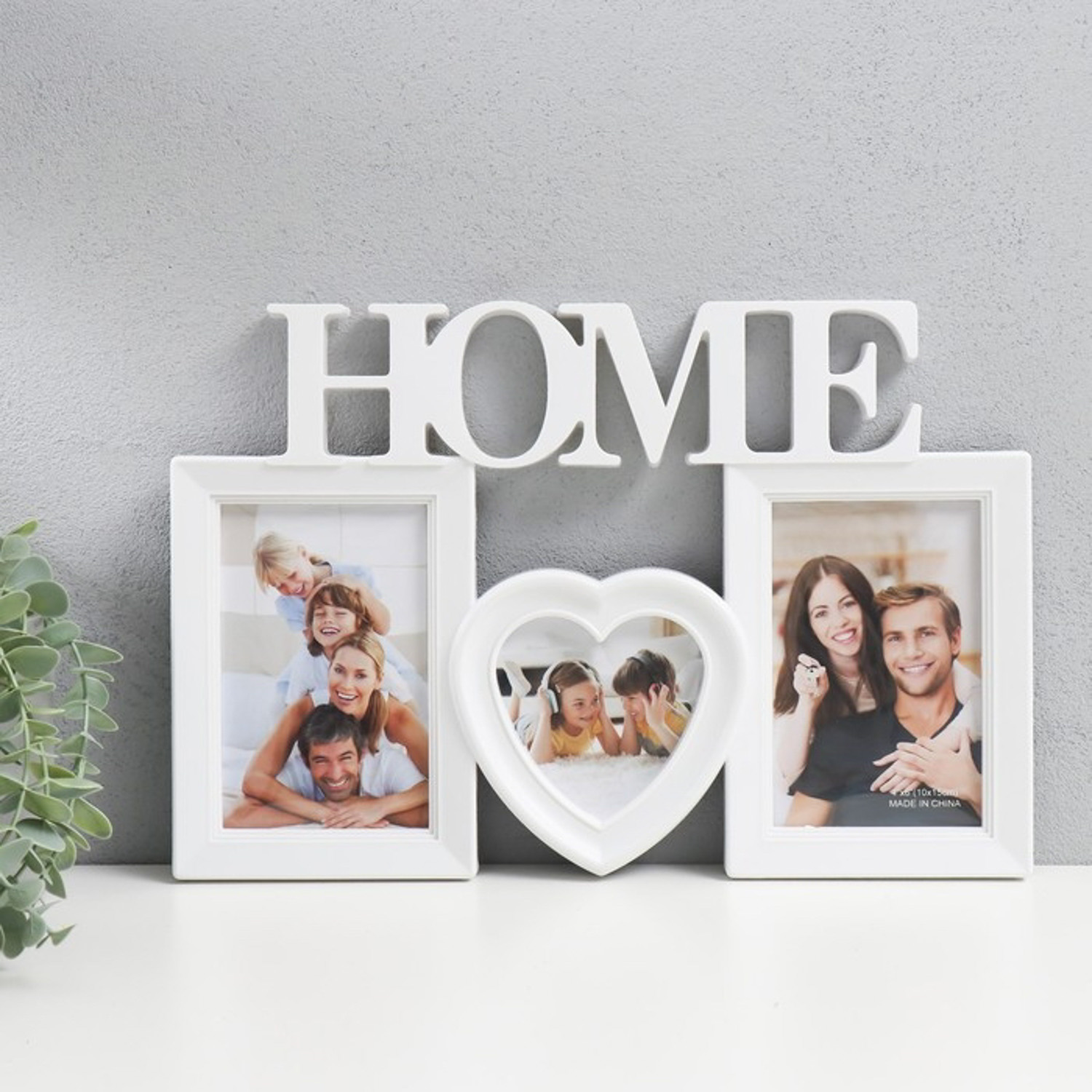 Фоторамка коллаж на 3 фото (10х15 см + сердце), 37х25 см, белый 10193799