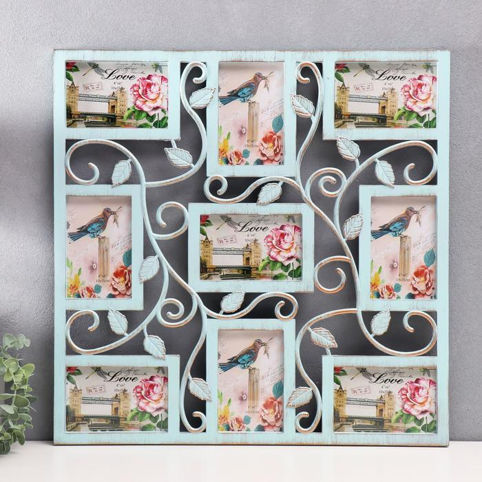 Фоторамка пластик на 9 фото 10х15 см "Вьющийся лист" мятная 55х55 см 1463851