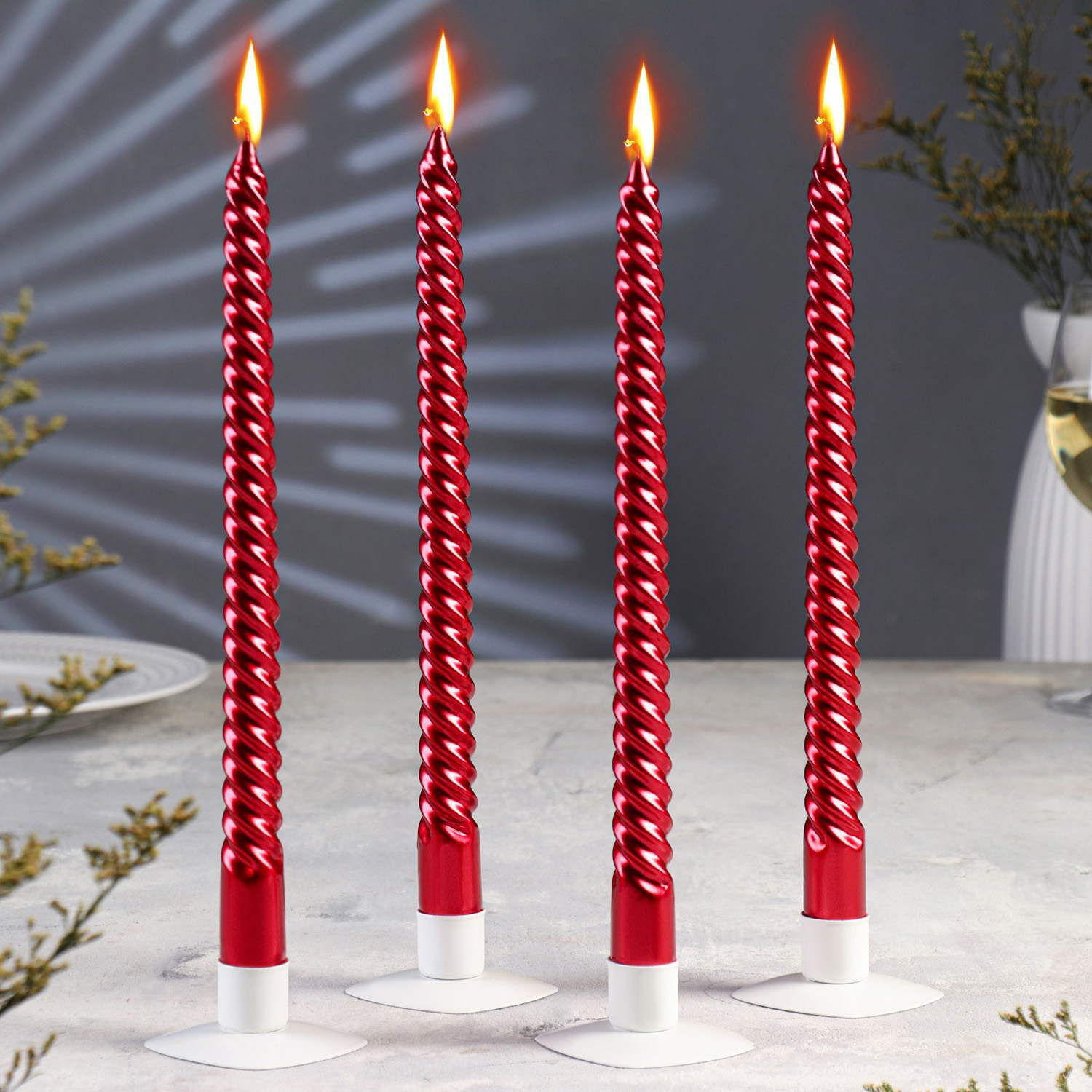 Набор свечей витых, 2.2×30 см, 4 шт., рубиновый металлик