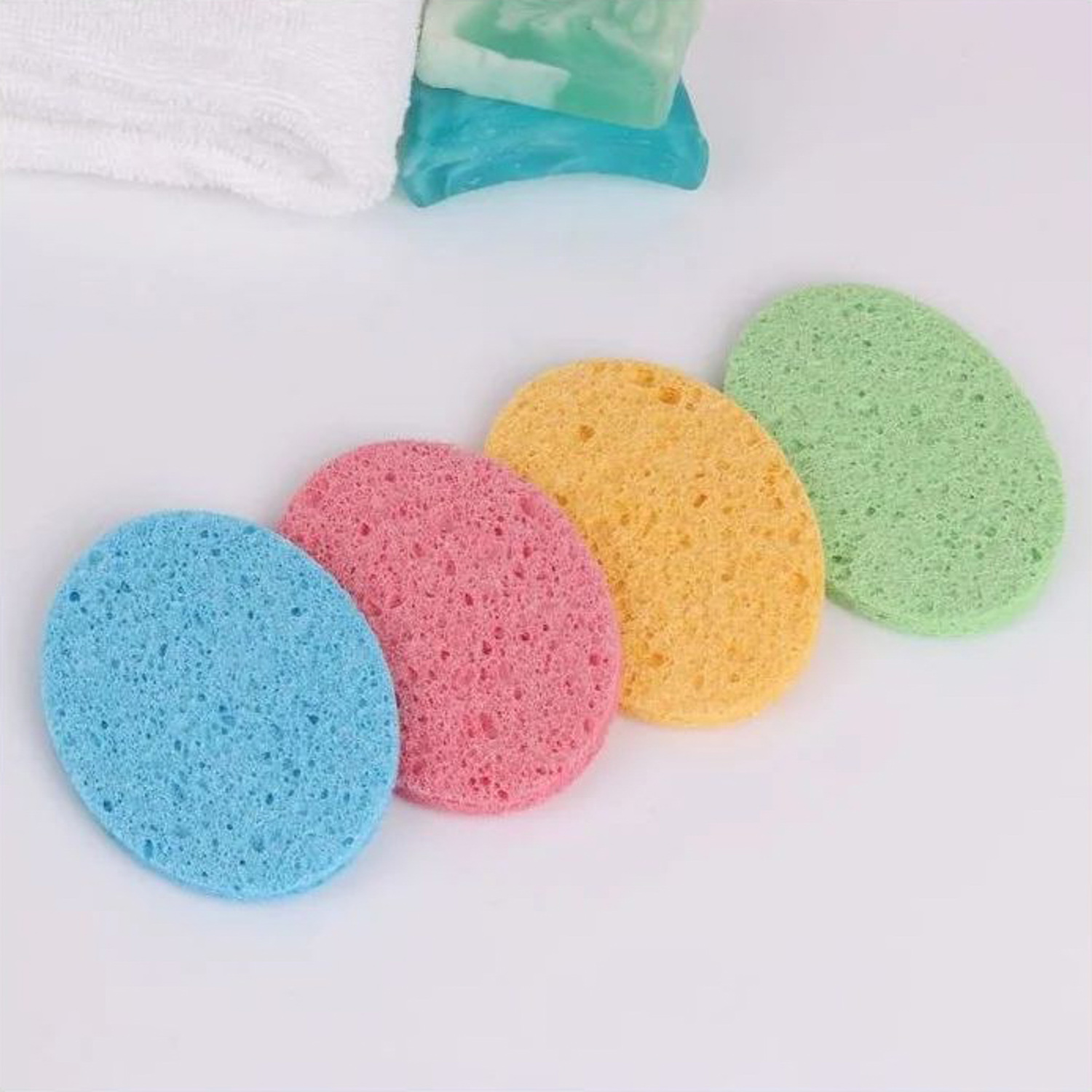 Спонж д/умывания целлюлоза Овал 11*8*0,8см влажн МИКС пакет QF 443007