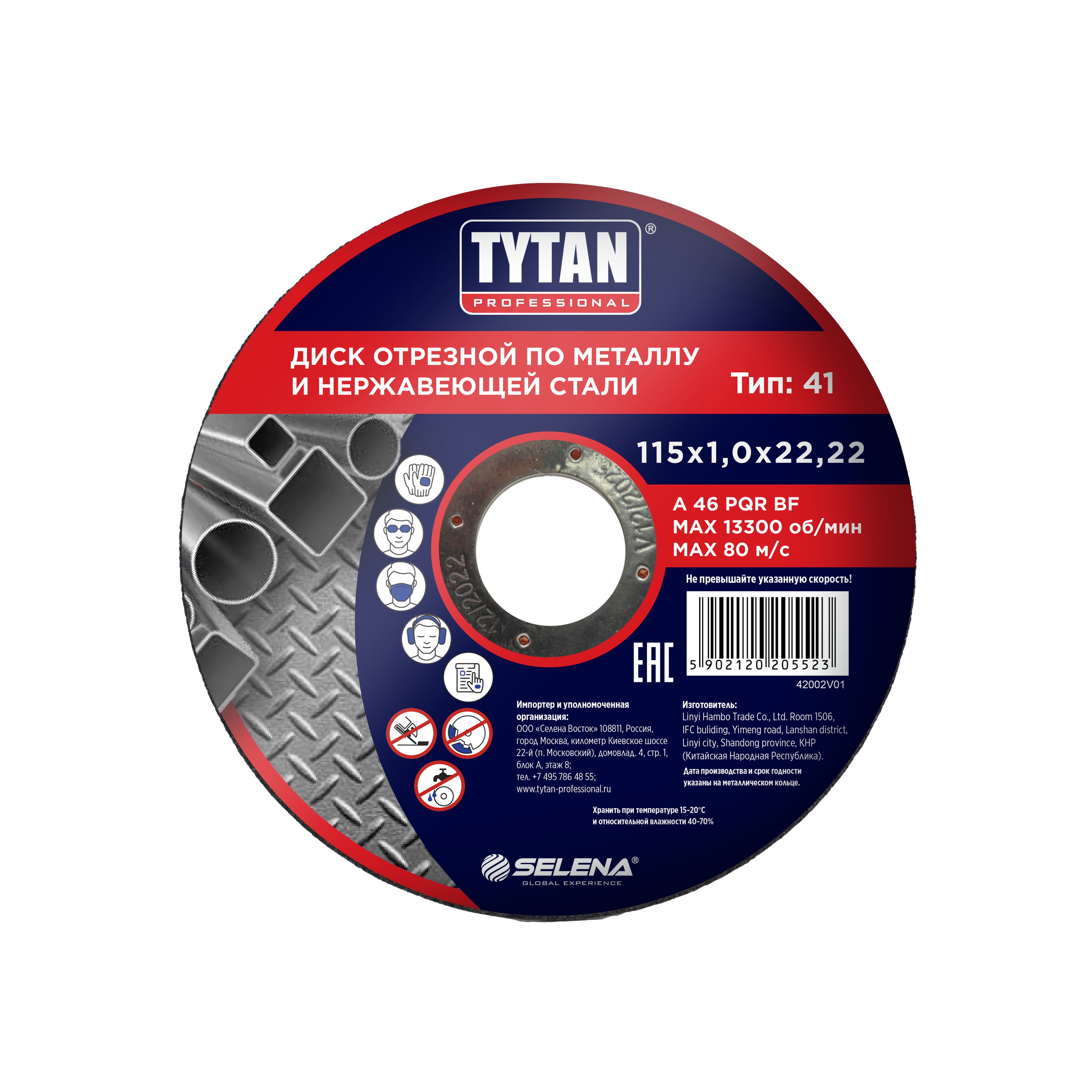 Круг отрезной 115*1,0*22.22 по металлу и нержавеющей стали арт.15523 TYTAN *10/50/400