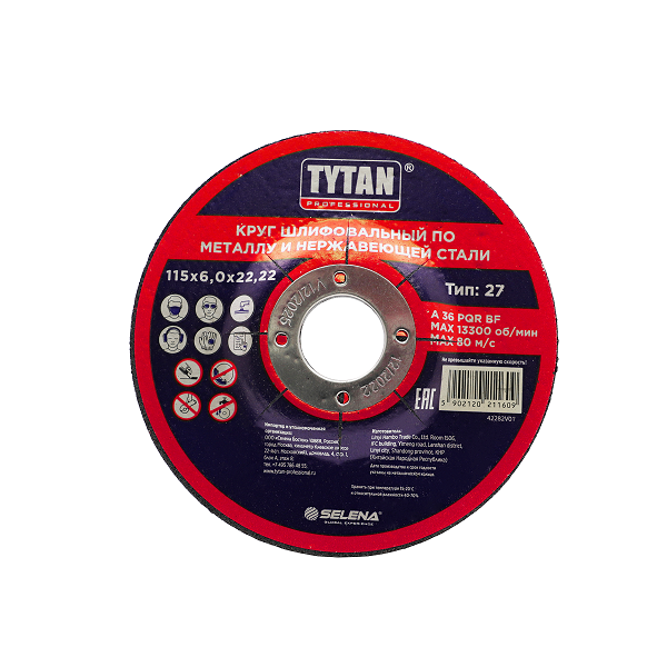 Круг шлифовальный зачистной 115*6*22,22мм по металлу и нержавеющей стали арт.11609 TYTAN *5/25/150