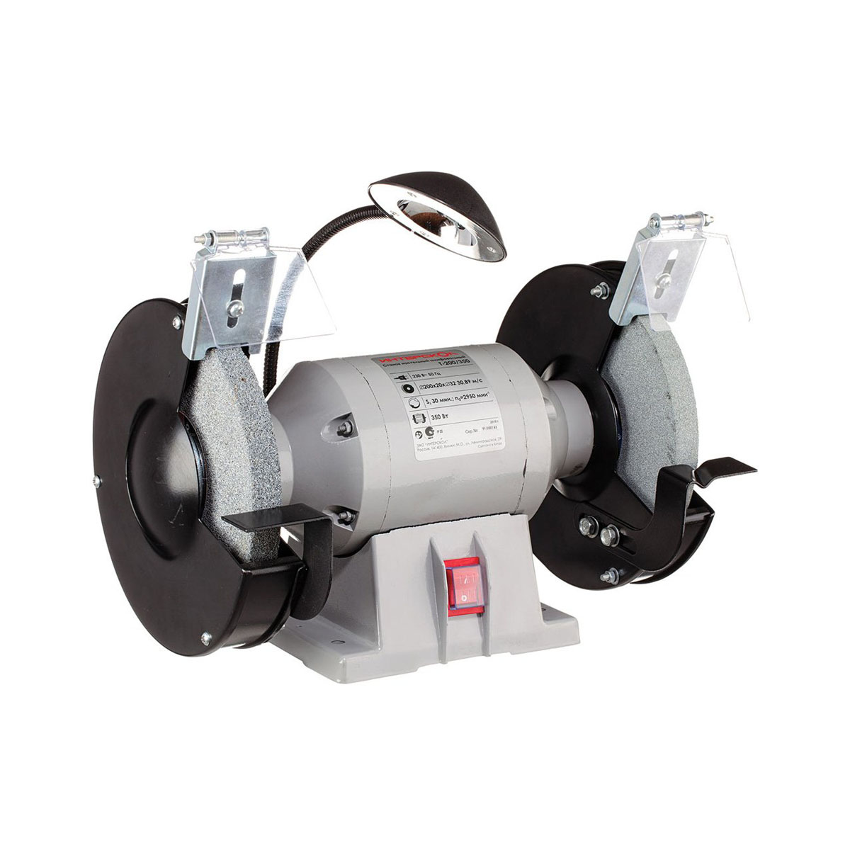 Машина настольная шлифовальная, руководство по эксплуатации, круг шлифовальный - 2 шт., экран прозрачный - 2 шт., искрогаситель - 2 шт., рабочий упор - 2 шт