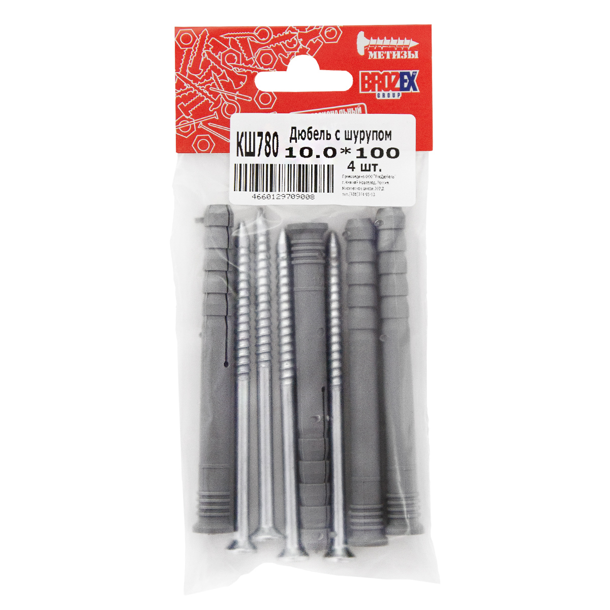 Дюбель с шурупом 10,0*100 (4шт) пакет BROZEX *10/100
