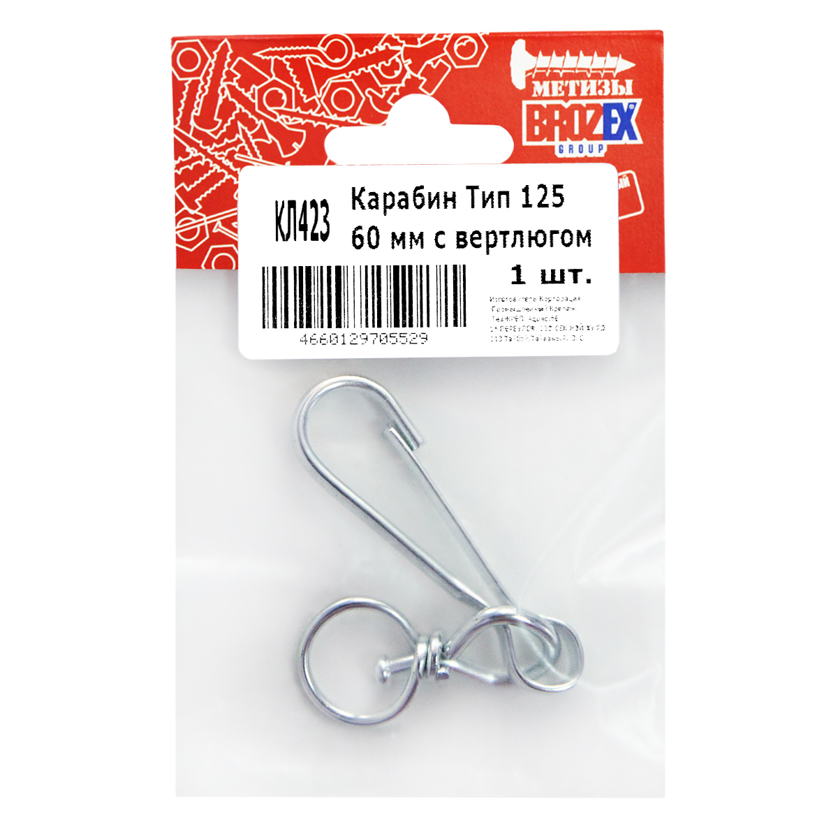 Карабин тип 125 60мм с вертлюгом (1шт) BROZEX *10