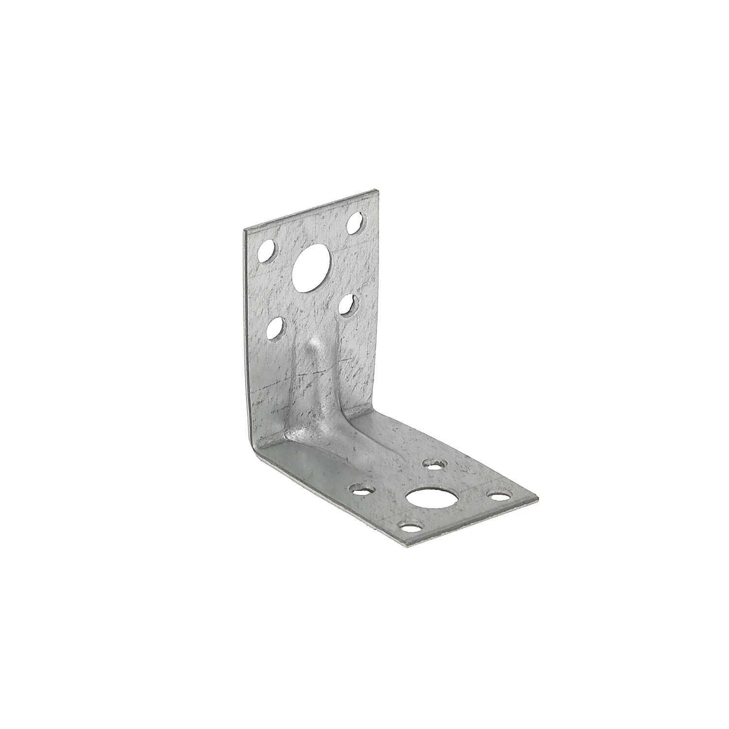 Крепежный уголок усилинный имеет дополнительное ребро жесткости, что придает ему большую прочность. Диаметр перфорированных отверстий 14 мм, 11 мм, 7 мм, 5 мм. Большие отверстия позволяют применять крепежные элементы больших диаметров: анкеры, шурупы с шестигранной головкой для крепления деревянных лаг, шурупы по дереву с полукруглой головкой. Для крепления к деревянным конструкциям используют также ершеные гвозди.