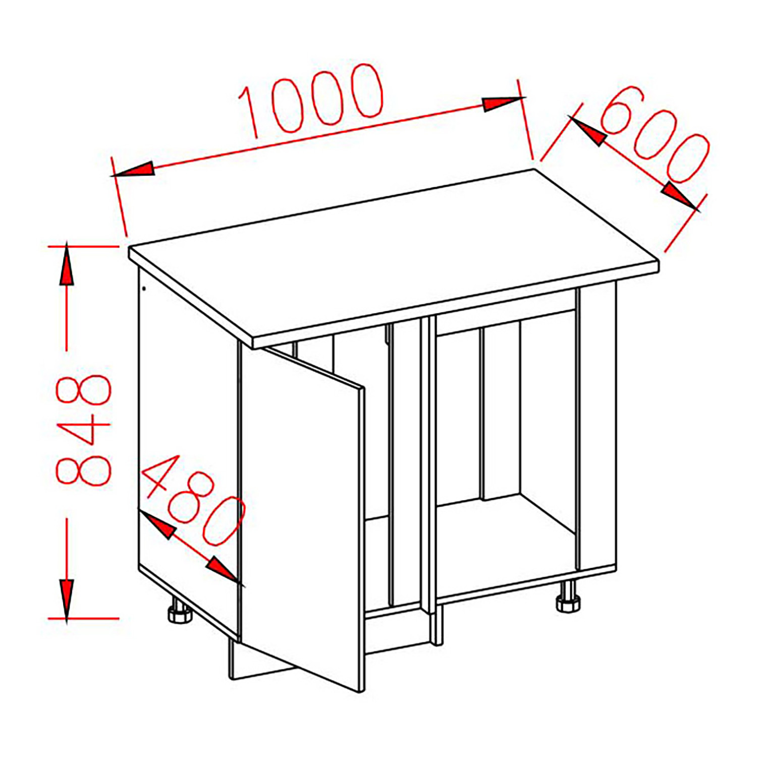 Шкаф напольный угловой 1000х850х600 мм BROZEX-WOOD Melissa, правый, с дверцей, светло-бежевый