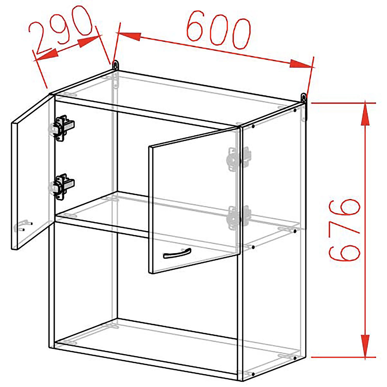 Шкаф навесной 600х676х290 мм BROZEX-WOOD Liberty, с двумя дверцами, белый