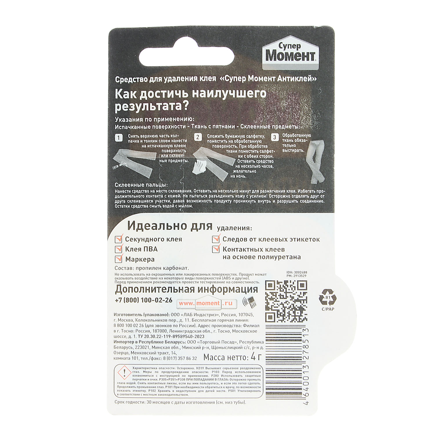 Антиклей Супер Момент – средство для удаления большинства видов клея и клеевых подтёков. Антиклей имеет гелевую консистенцию, не расстекается, экономичен в расходе. Удобен при использовании на вертикальных поверхностях.