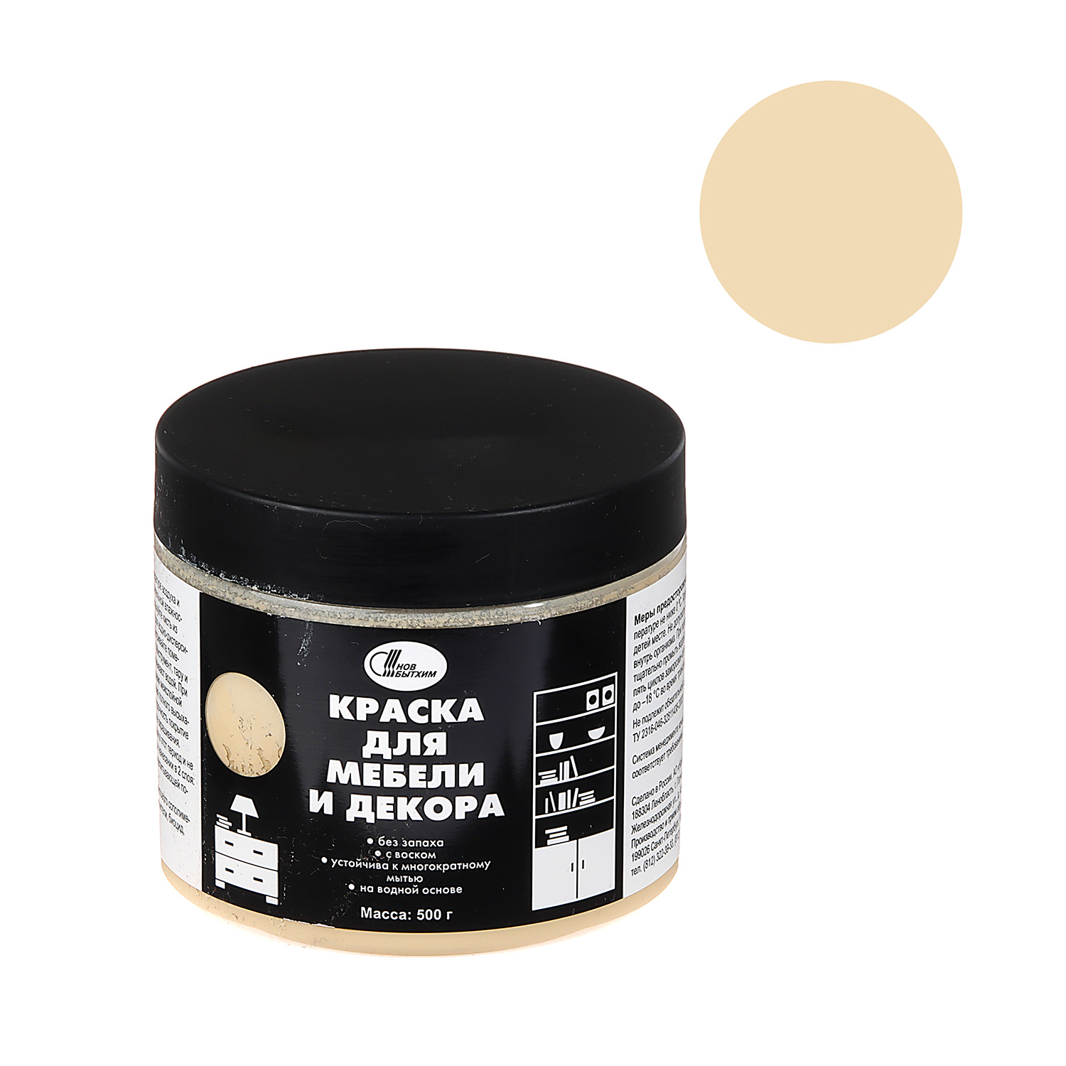 Краска акриловая для мебели и декора Песочный 0,45 кг Новбытхим *1/6