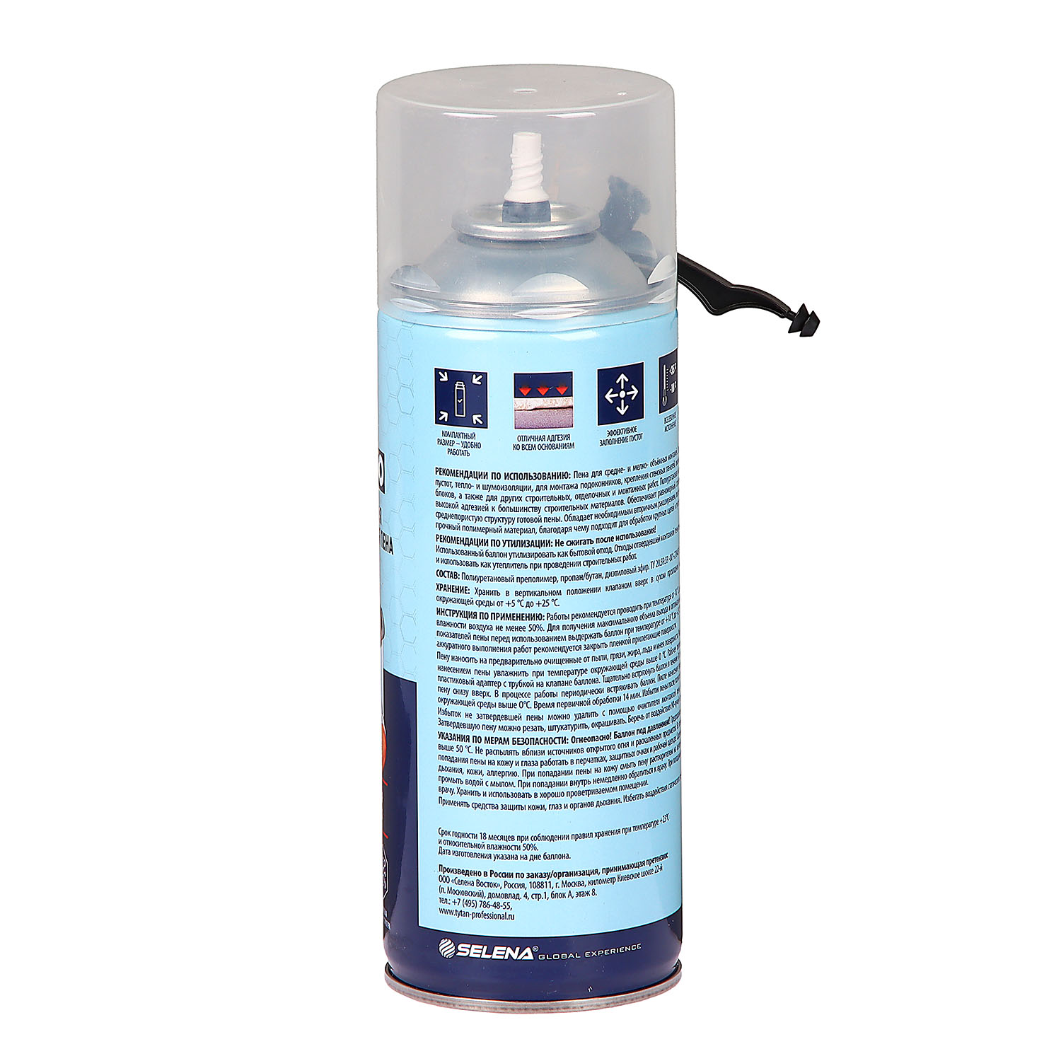 Пена монтажная бытовая 500мл/390гр всесезонная -10С TYTAN САНТЕХBRO 14563 до 25л *1/12/672