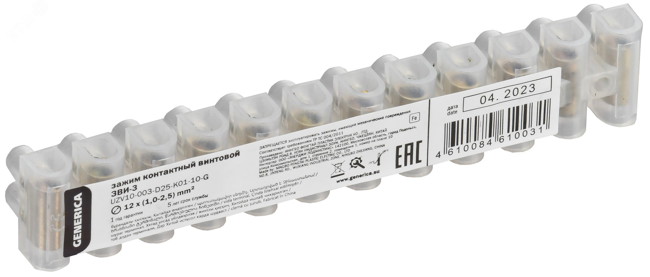 Колодка клемная ЗВИ-3 1,0-2,5мм2 (12пар) белый GENERICA IEK *10/1000