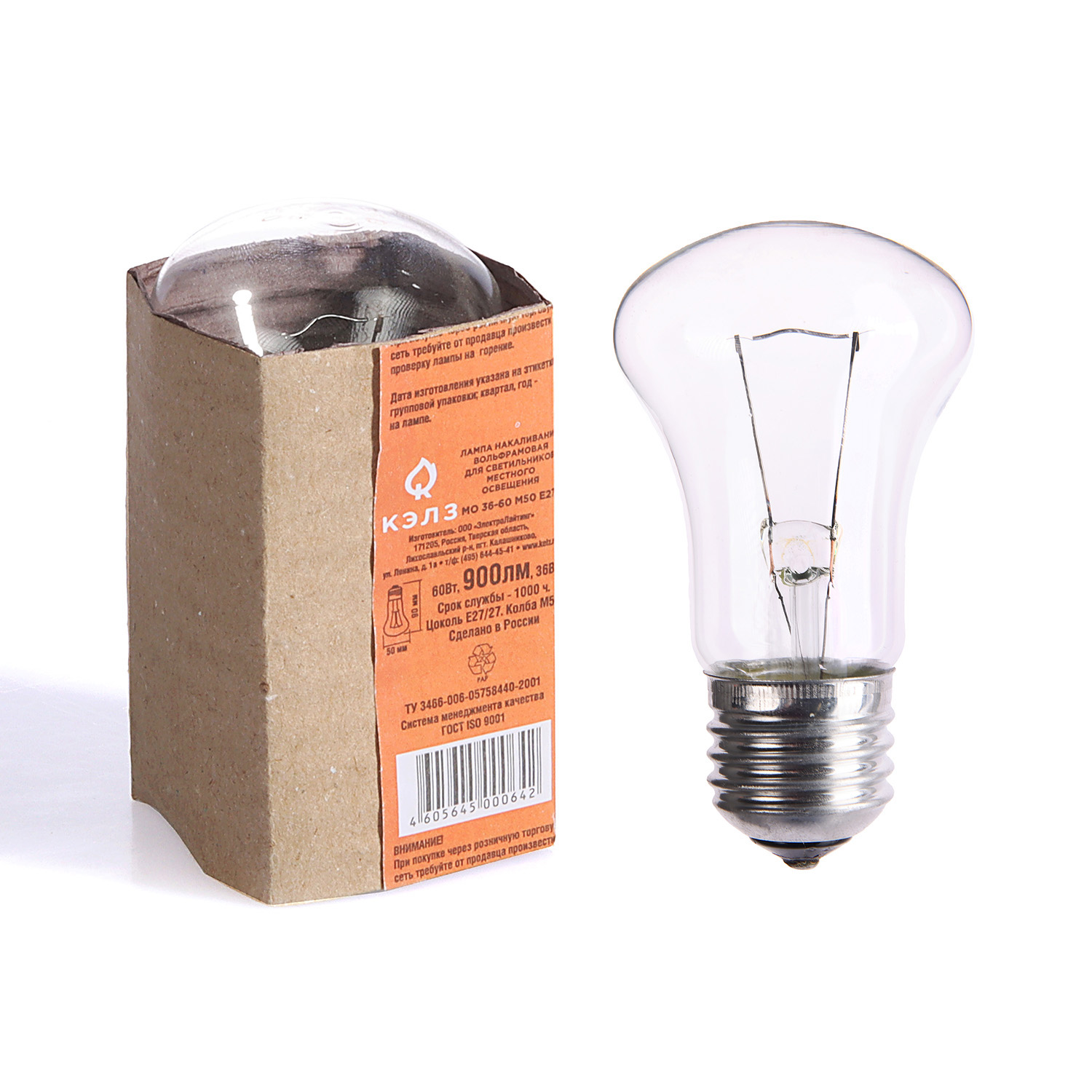 Лампа накаливания КЭЛЗ, Е27, груша, 60 Вт, 900 Лм, теплый белый свет