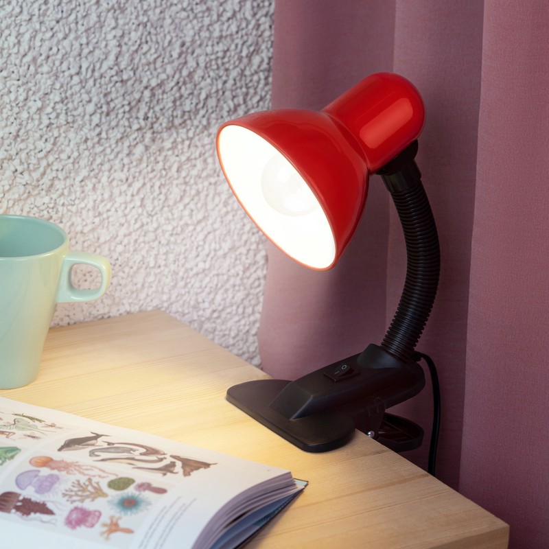 Светильник настольный ЭРА N-212 40Вт Е27 (прищепка) красный N-212-E27-40W-R *1/50