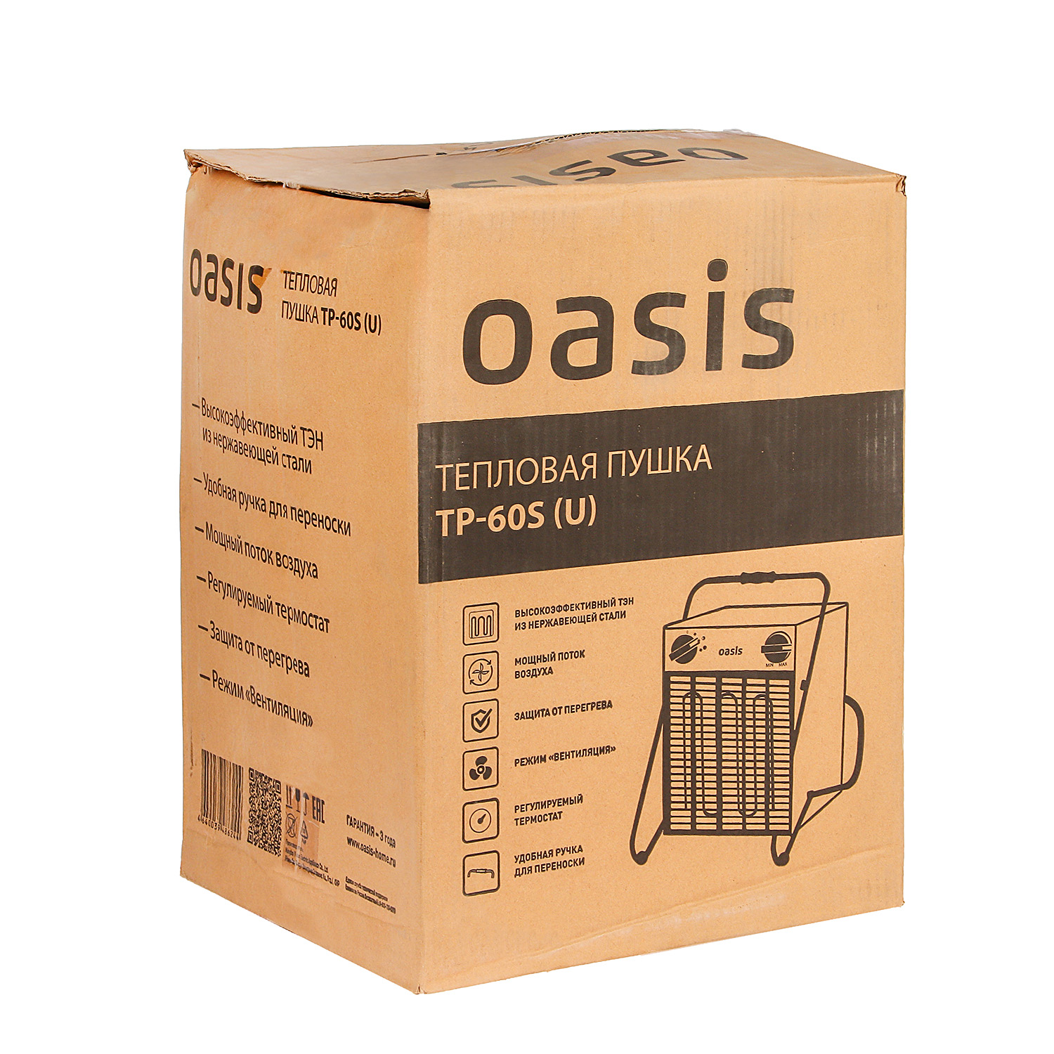 Пушка тепловая электрическая 6кВт 600м3/ч S-60м2 ТЭН 380В TP-60S (U) ОАЗИС *1