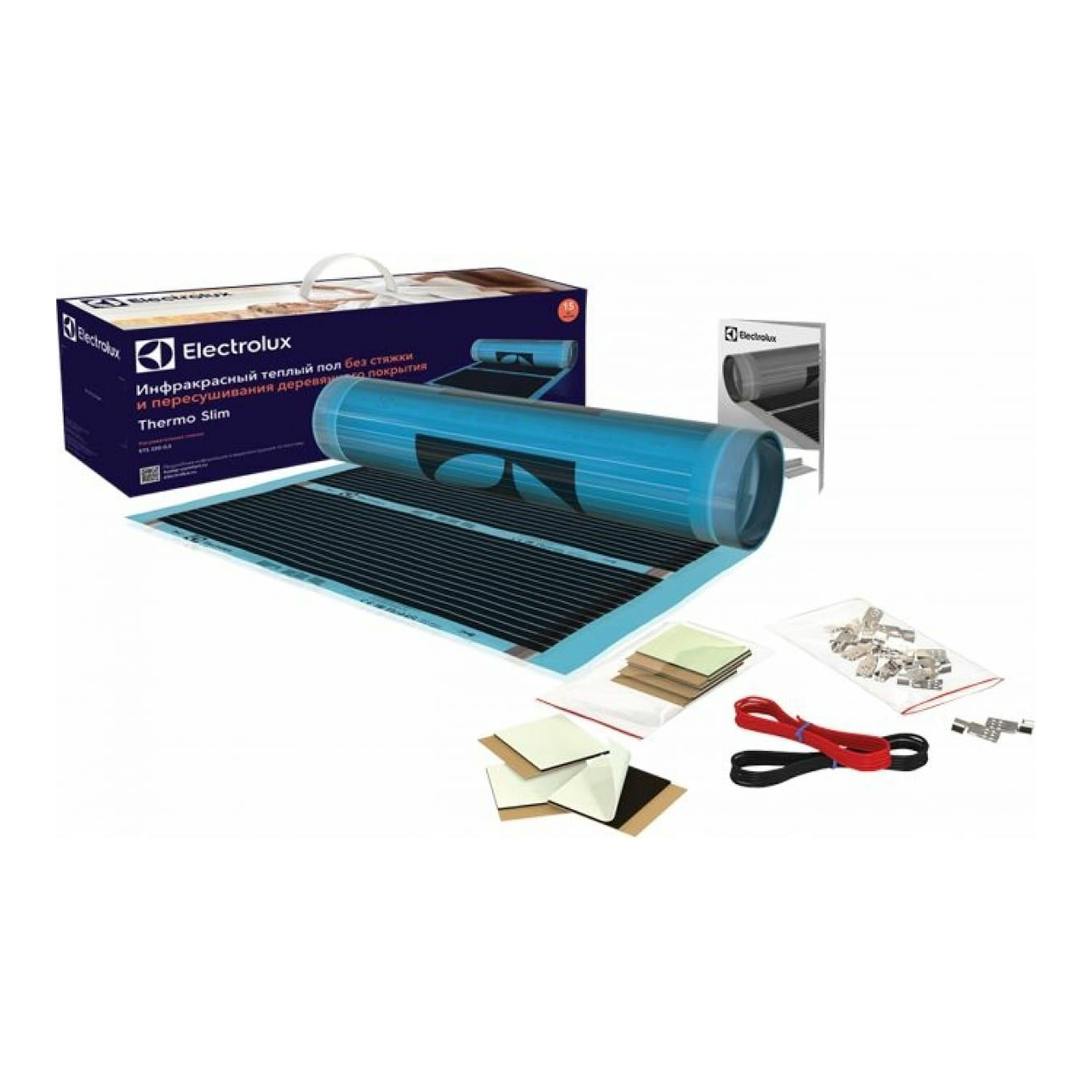 Нагревательная пленка, комплект проводов, контактные зажимы, изоляционная лента, инструкция