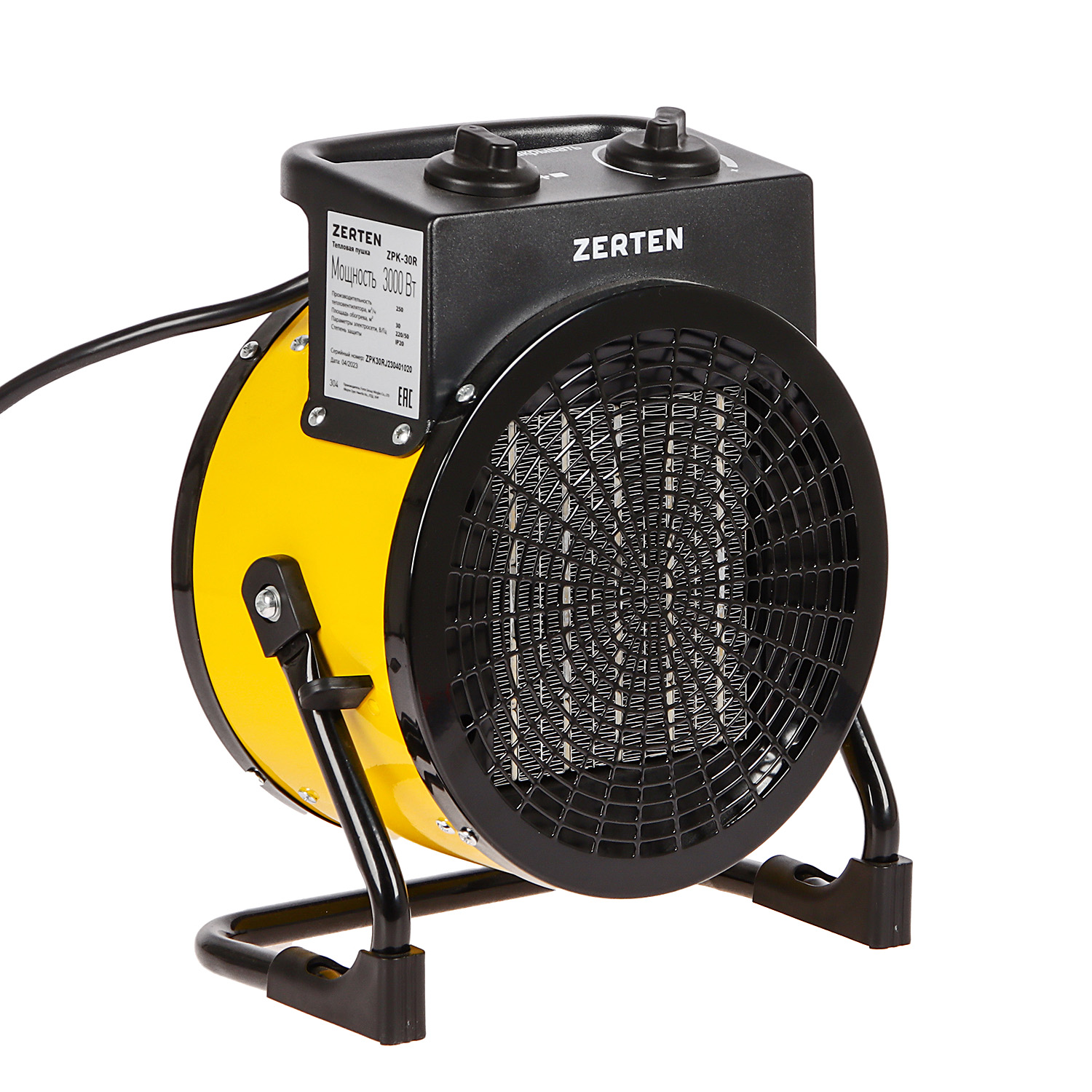Пушка тепловая электрическая 3кВт 250м3/ч S-30м2 керамический 220В ZPK-30R ZERTEN *1