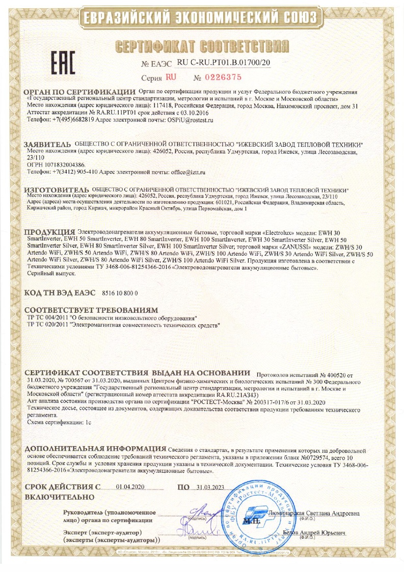 Водонагреватель со шнуром питания, предохранительный клапан, УЗО, крепежные анкеры — 2 шт., инструкц |