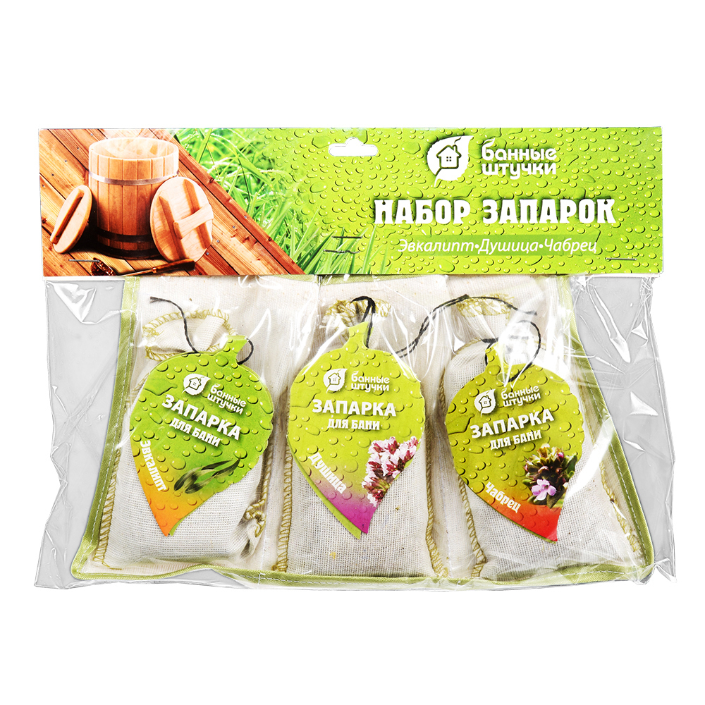 Набор запарок д/бани в сумочке 3шт. (мята, эвкалипт, можжев.) "Банные штучки" *1(для розницы)