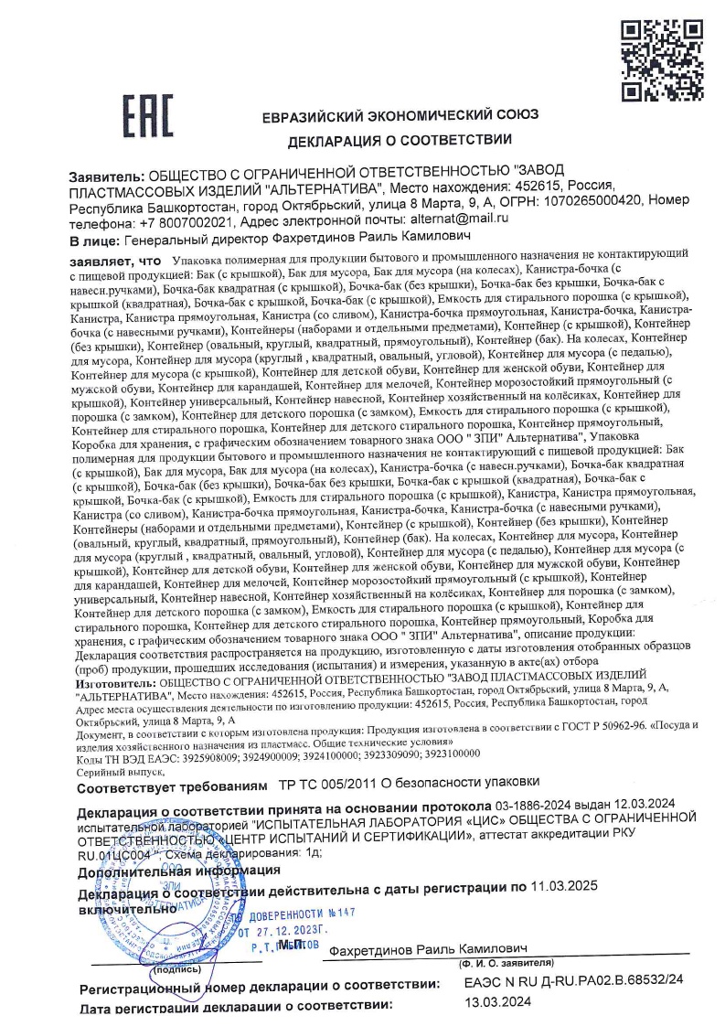Бочка-бак пластм. 250л Квадр. БЕЗ крышки 650х650х885мм М1695 (ЗПИ "Альтернатива") *1/3