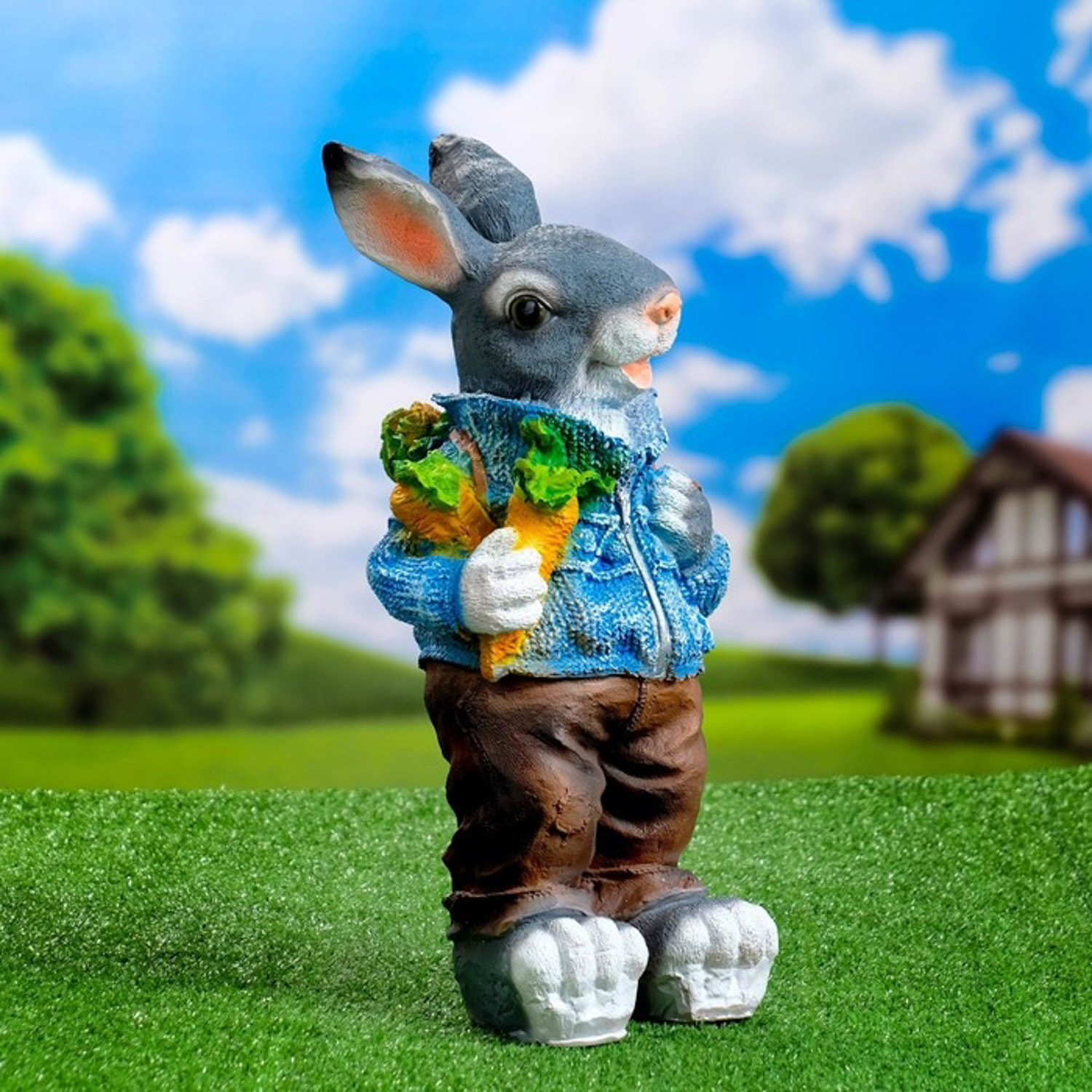 Садовая фигура "Зайка с морковкой и рюкзаком" 43см 7793714