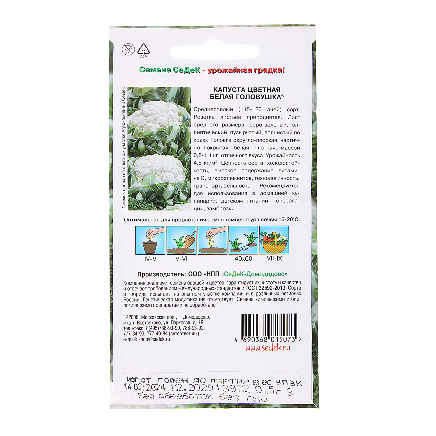 Семена Капуста цветная Белая Головушка 0,5гр СеДек*10/200