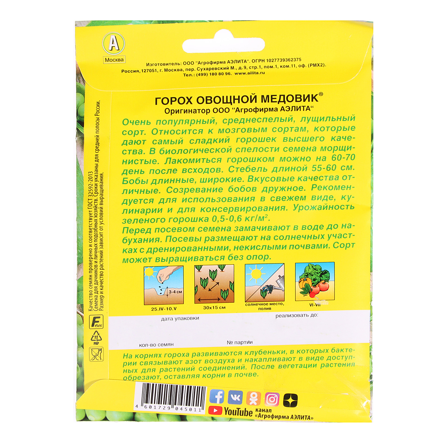 Семена Горох Медовик 25гр Аэлита цв автор *5/500