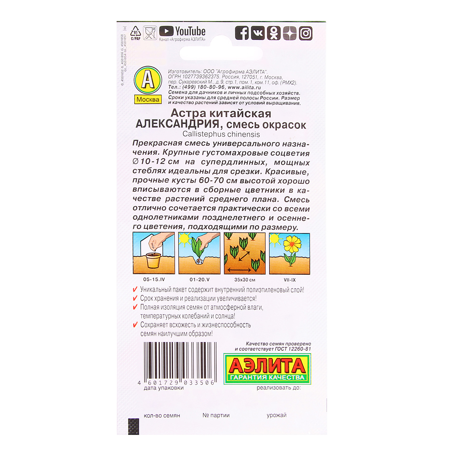 Семена Астра Александрия смесь 0,2гр Аэлита цв *10/200