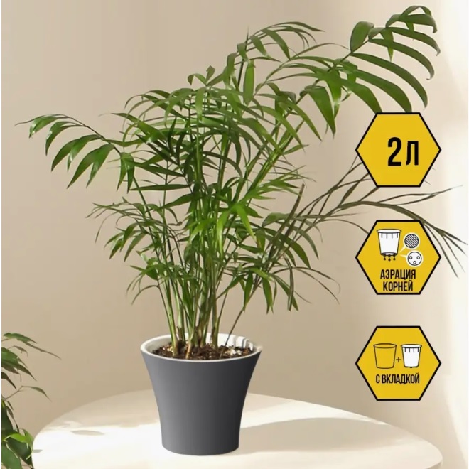 Кашпо пластм. "Сити" 2,0л d верха 175мм h150мм со вставкой Антрацит С17.5-12 *1/10