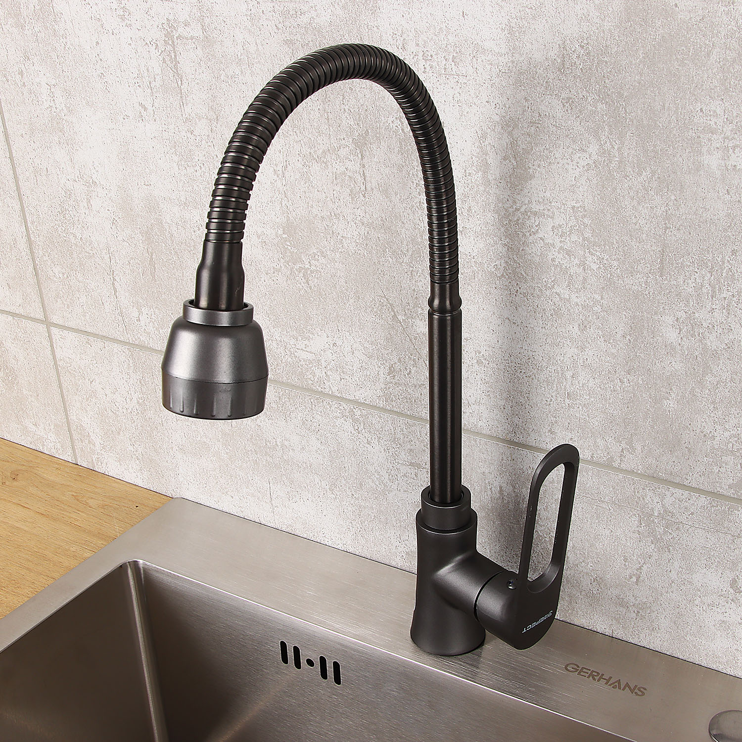 Смеситель для кухни Эверест B58-15319 высокий излив, брезентово-серый *1/10