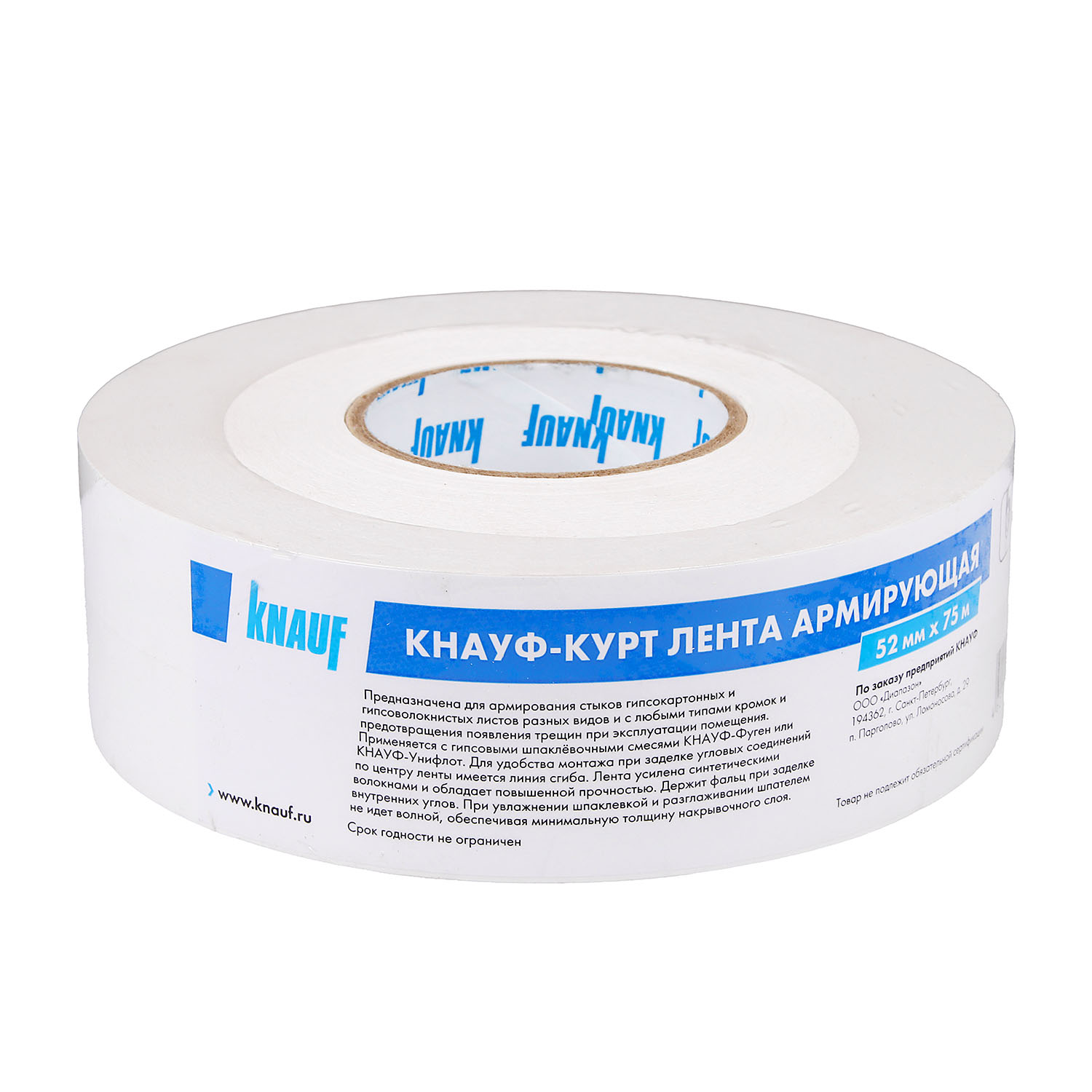 Лента КНАУФ-Курт 52 мм х 75 м изготовлена из специальной белой бумаги с армирующими синтетическими волокнами. Используется для укрепления стыков гипсокартонных и гипсоволокнистых листов разных видов и с любыми типами кромок, а также для предотвращения появления трещин при отделочных работах.