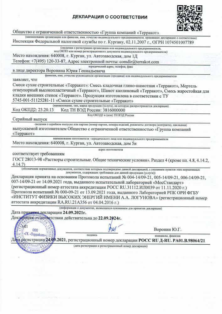Смесь ремонтная жаростойкая Терракот применяется на нагреваемых объектах. Благодаря высокой пластичности и сбалансированному тонкодисперсному составу материал равномерно заполняет пустоты. Жаростойкость смеси составляет 400 °С. Компоненты продукта безопасны для человека.