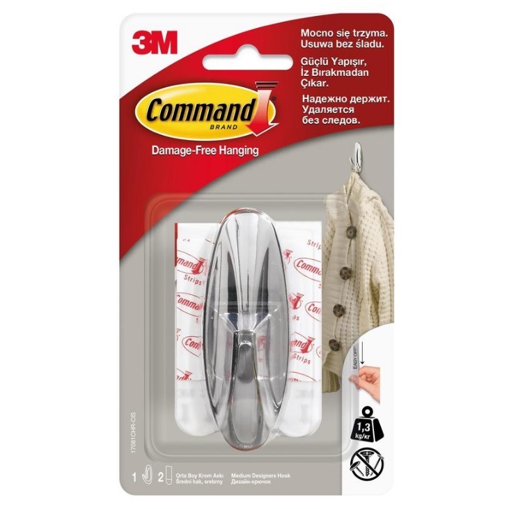 Крючок самоклеящийся пластм. Большой Овальн. Хром. (+1сменная клейк.пол.) 17081CHR Command (3M™)*1/6