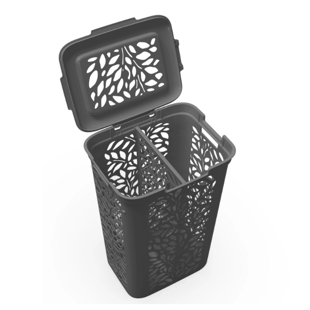 Корзина для белья пластм. 60л "Leaves" с разделителем 440x340x635мм Серый 48915 ("Поли-быт") *1/4