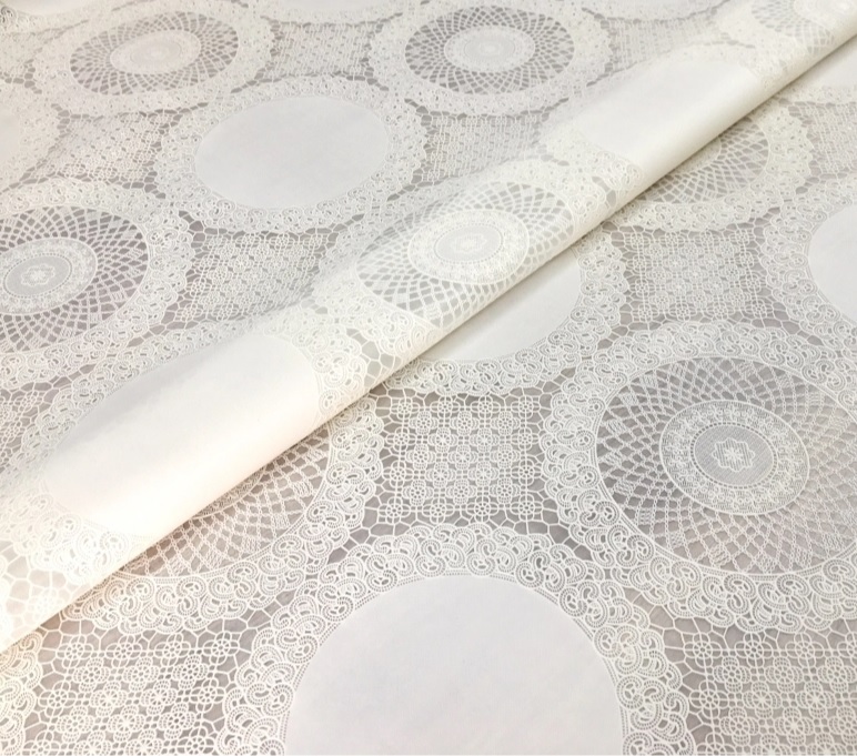 Клеёнка без основы ажурная "Круги" бежевая шир.1,37м GW-21568 "Great Way" *20