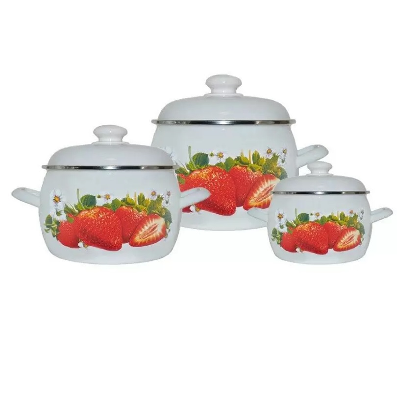 яяяНабор кастрюль эмалированных: 2,0л+3,5л+5,0л рис."Сочная клубника" С-207АП2/4 "Лысьвен ЭМАЛИ" *1