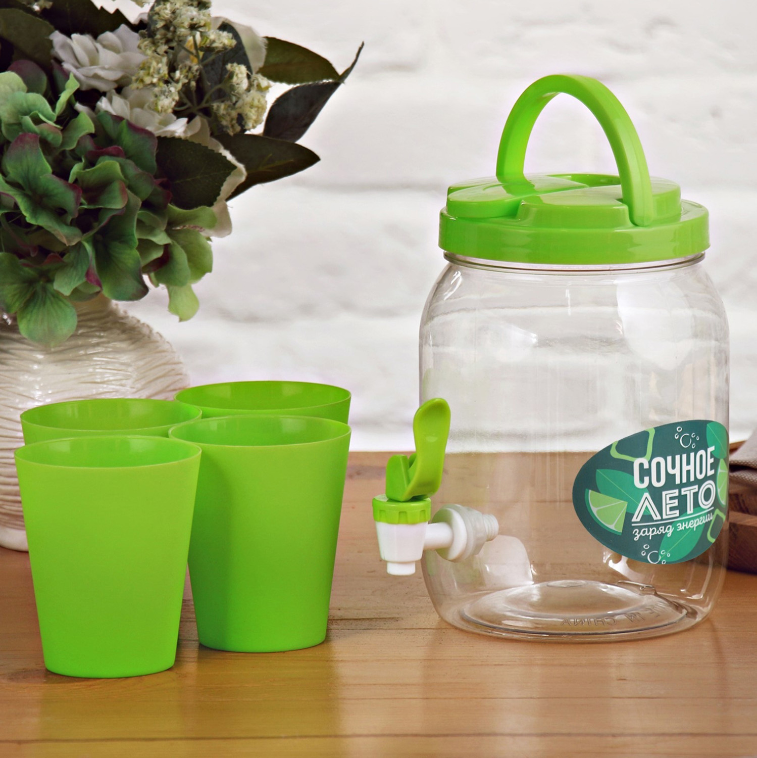 Набор "Сочное лето", бочка для лимонада, 4 стакана 4135226