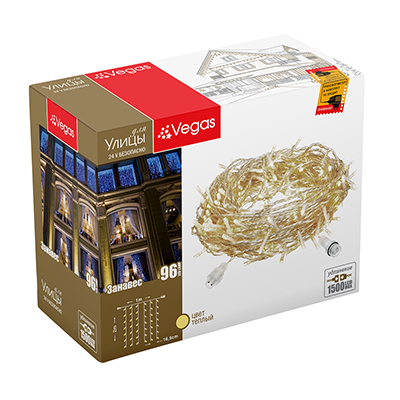 Гирлянда Занавес, 24 В, VEGAS, 1х2 м, 96 ламп, теплый белый, 6 нитей (нужен блок ЕД711)
