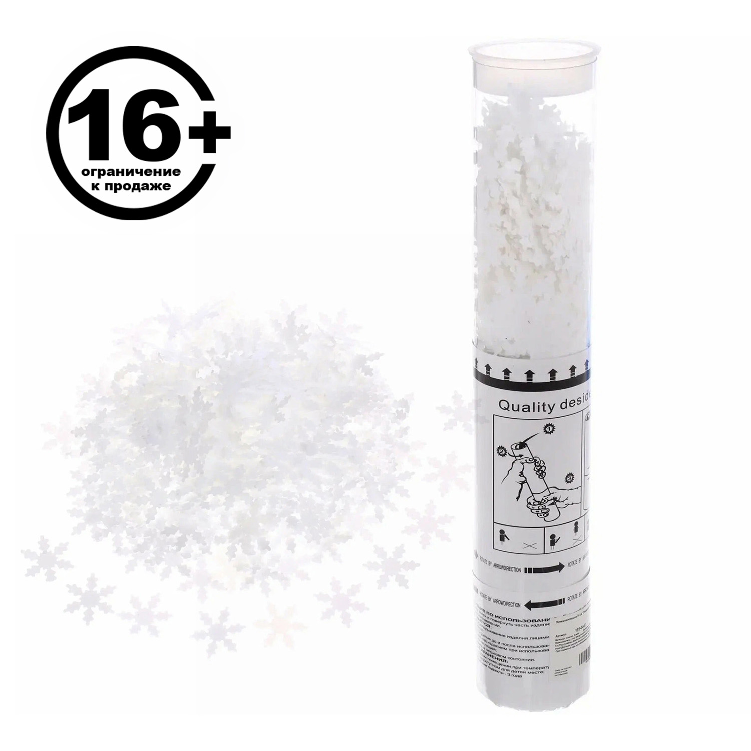 Пневмохлопушка 30 см "Снежинки" конфетти (белый)