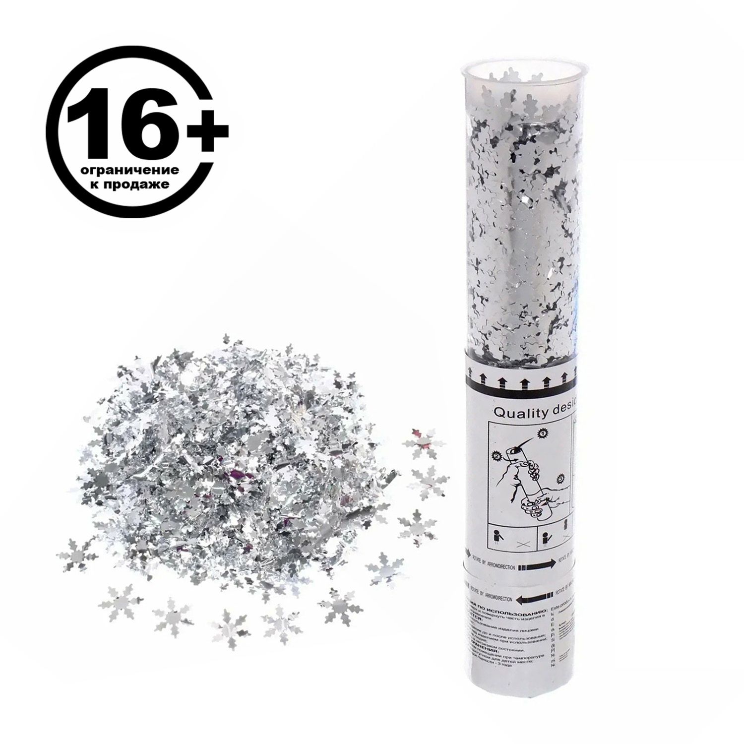 Пневмохлопушка 30 см "Снежинки" конфетти (серебро)