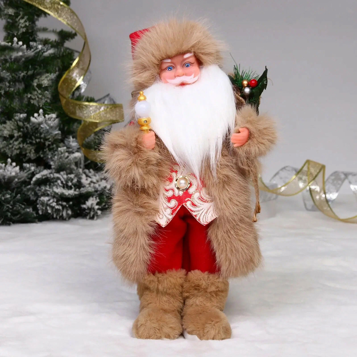 Дед Мороз - Лесовичок "Лесной добряк" 40 см, Красный/бежевый