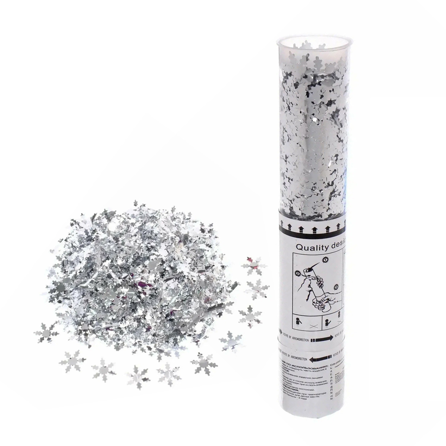 Пневмохлопушка 30 см "Снежинки" конфетти (серебро)