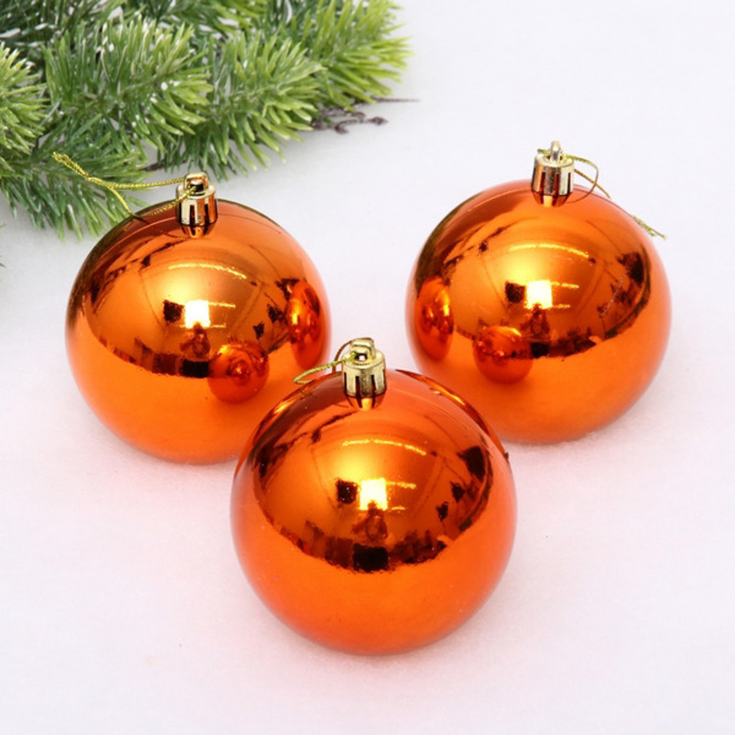 Новогодние шары 8 см (набор 3 шт) "Глянец", янтарь