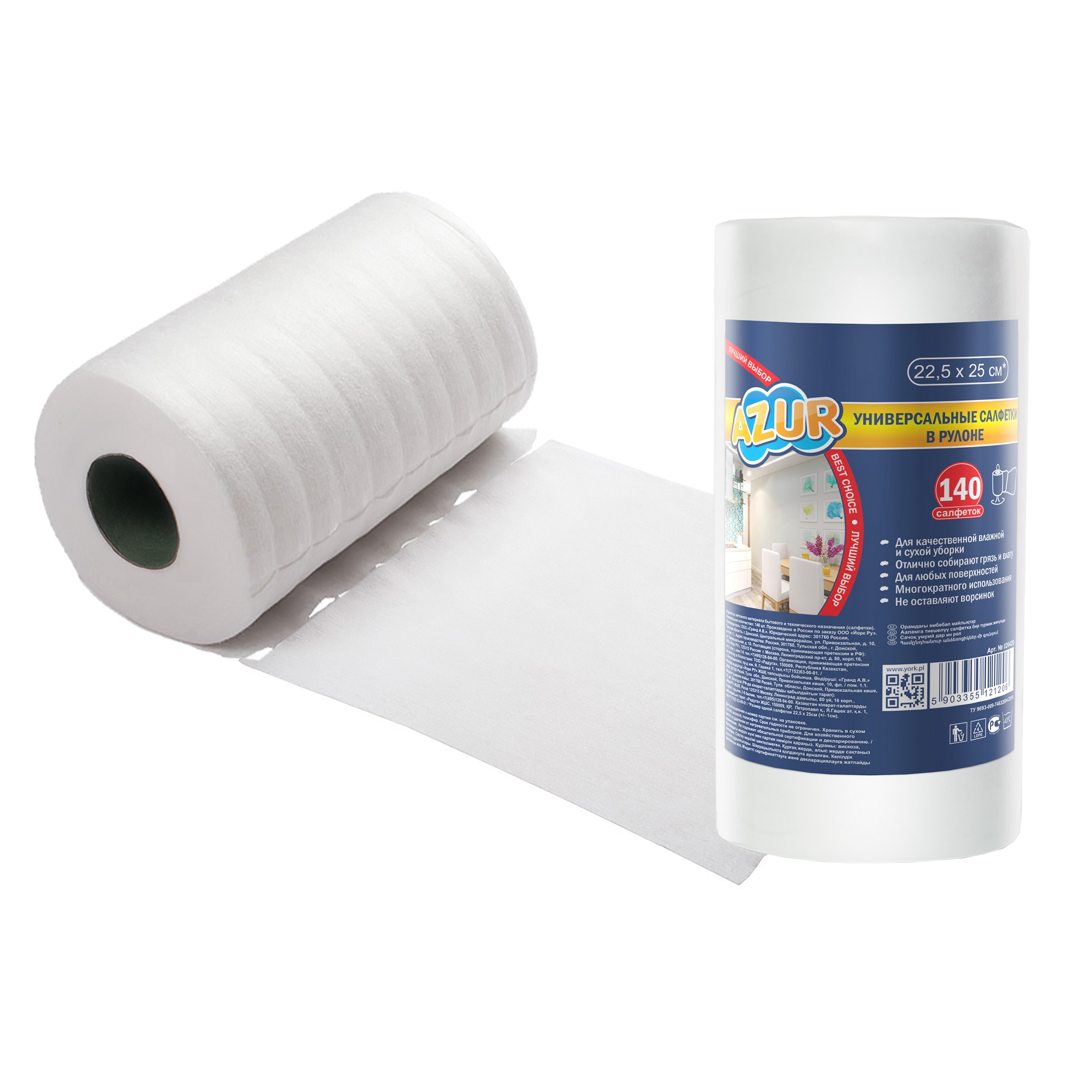 Салфетки д/уборки в Рулоне 25х22,5см 140шт "салфетка универсальная" 020420 "York" *1/18