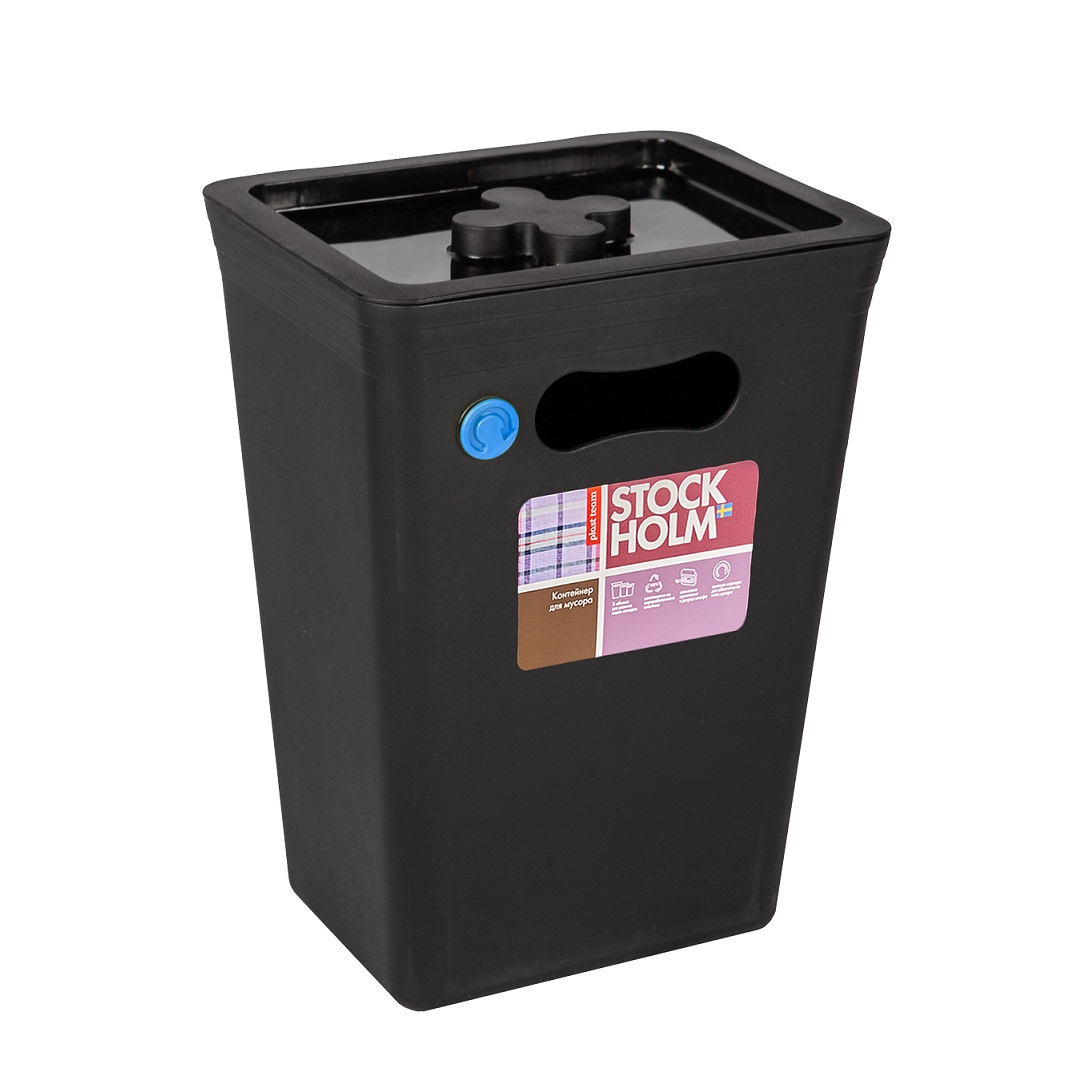 яяяКонтейнер д/мусора пластм. с крышкой 15л "Stockholm" Графит PT6571ГРФ-8 ("Plast Team") *1/8