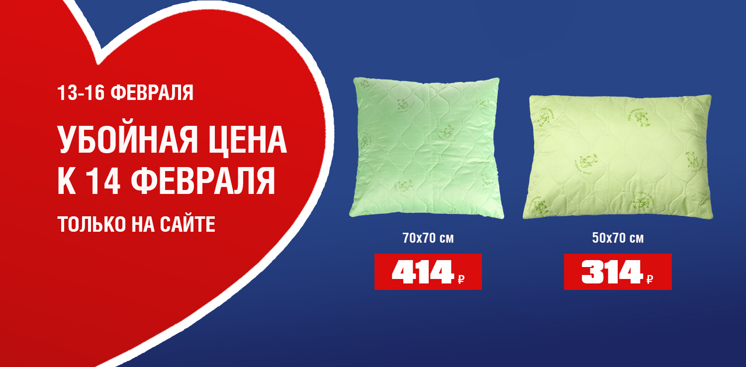 Условия отличаются: Ивдель, Первоуральск - в акции участвует только арт. ВЧ997 Подушка 50х70 см - 314 ₽; Красноуфимск, Реж, Тюмень - в акции участвует только арт. ВЧ999 Подушка 70х70 см - 414 ₽.